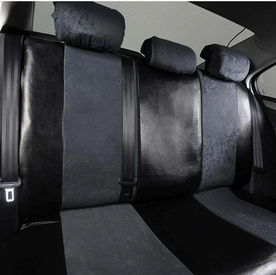 - Mit Klettverschluss für die Kopfstützen und Reißverschluss für die Rücksitzbank