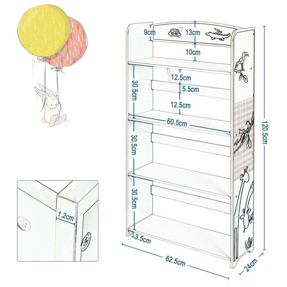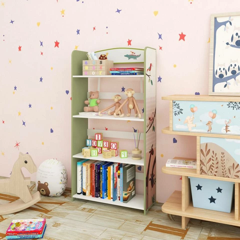 Das farbenfrohe Kinderbuchregal mit Zoomotiven kann das Interesse der Kleinen am Auswählen und Organisieren wecken, um Spielzeug und Bücher ordentlich aufzubewahren.