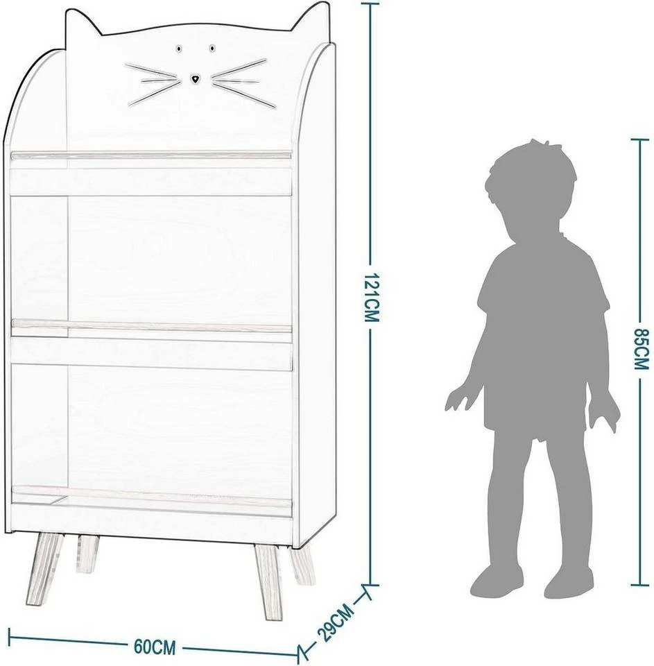 - Kinderregal Bücherregal Katzenform MDF Kiefernholz