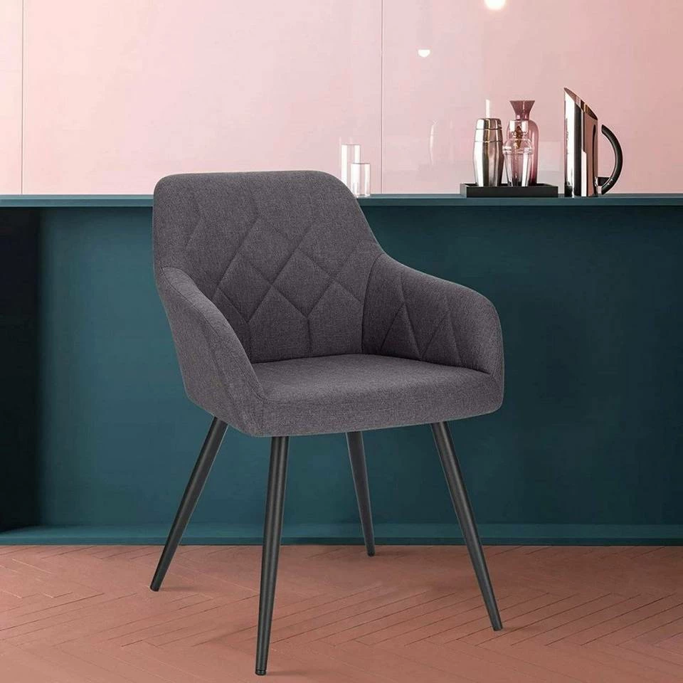 - Dieser Esszimmerstuhl mit Rautengittermuster ist schlicht und kombiniert den modernen Leinensitz mit verjüngten Retro-Metallbeinen, wodurch ein stilvolles Aussehen geschaffen wird.