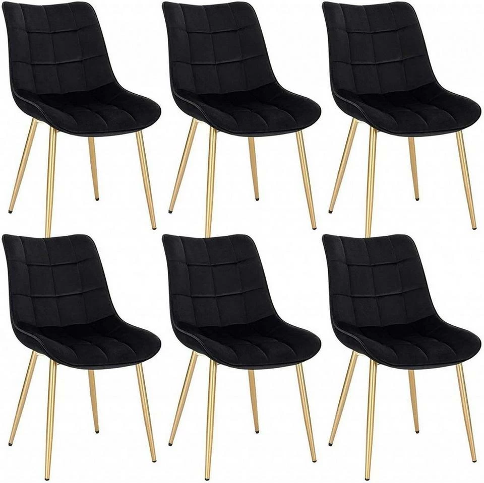 - 6er-Set Küchenstühle aus Samt goldene Beine