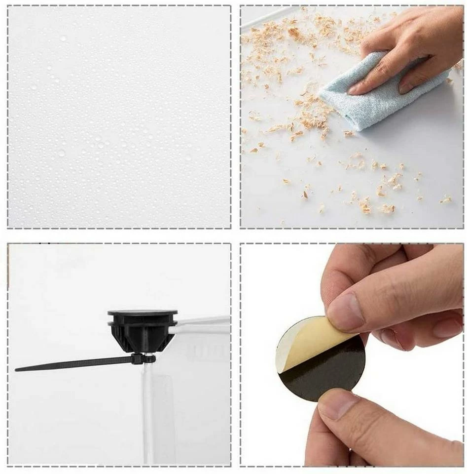 - Wenn Sie den Müll reinigen oder den Teppich unten ersetzen, können Sie das Gehege leicht verschieben.