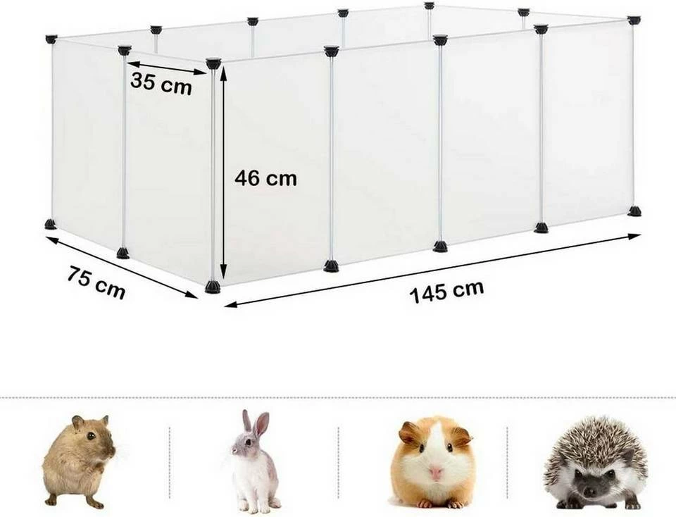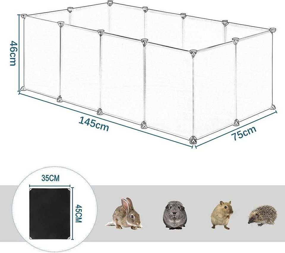 - Die Kunststoffplatten sind 35 x 45 cm. Die Höhe bis mindestens 90-100 cm eignet sich für die Haustiere mit super Springfähigkeit wie Welpen, Kaninchen und Hasen.