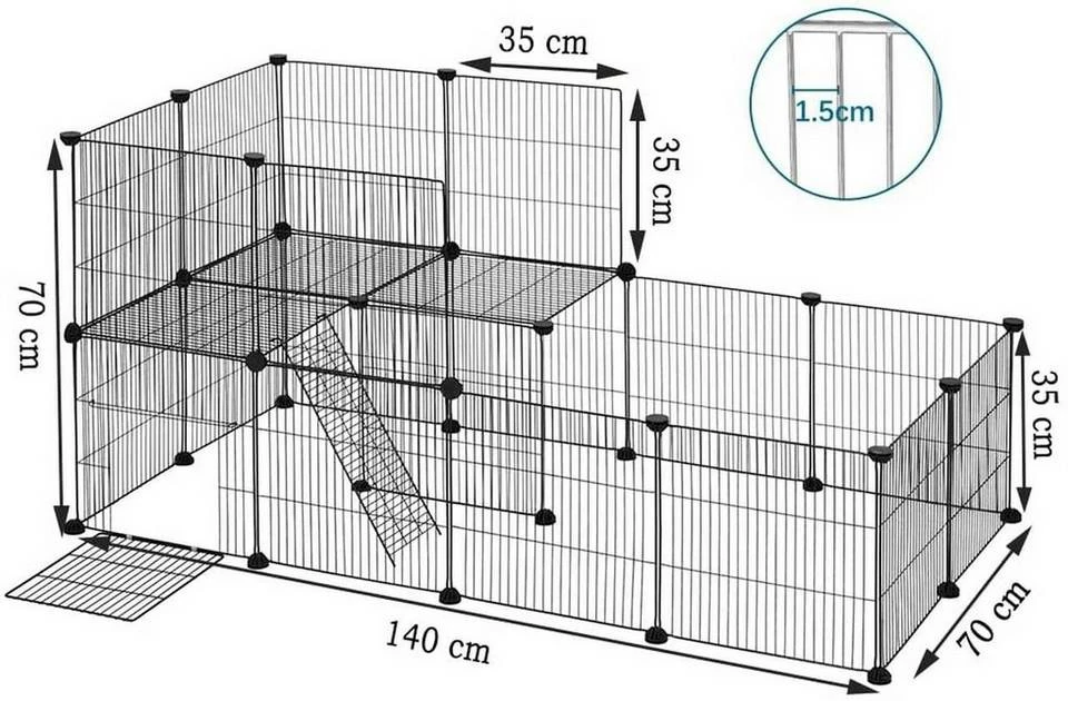 - Der mit einer Kappe versehene Haustierzaun eignet sich besonders für kleine Haustiere mit starken Sprungfähigkeiten