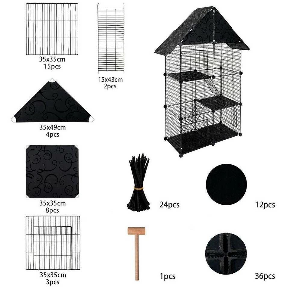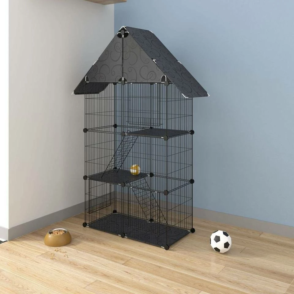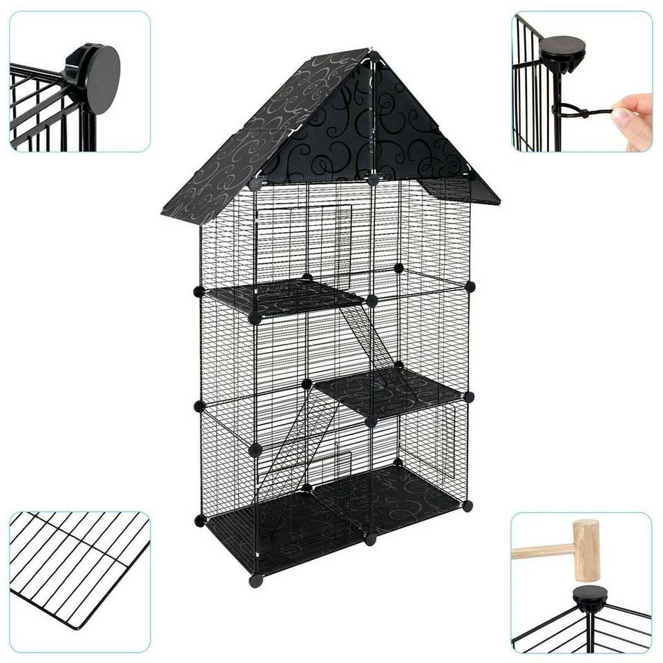 - Kleintierkäfig Katzenkäfig Schwarz 75x39x145cm