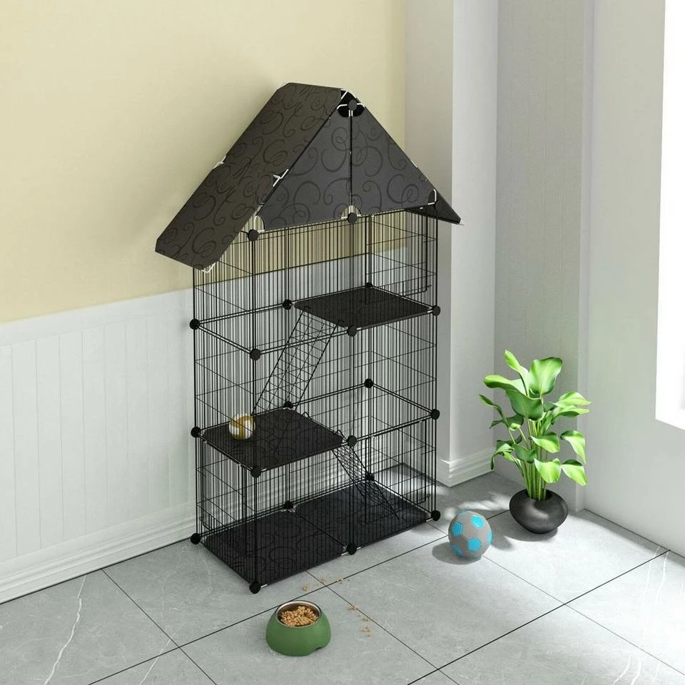 - Der mit einer Kappe versehene Haustierzaun eignet sich besonders für kleine Haustiere mit starken Sprungfähigkeiten