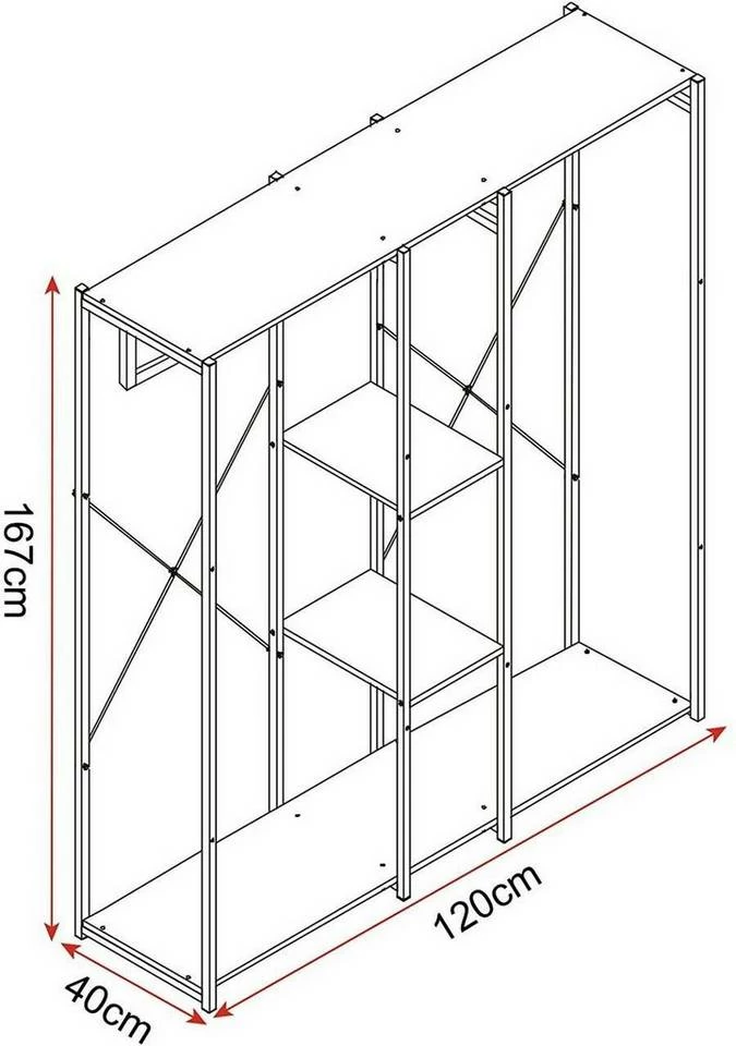 - Maße: 120 x 40 x 167 cm ( L x T x H )