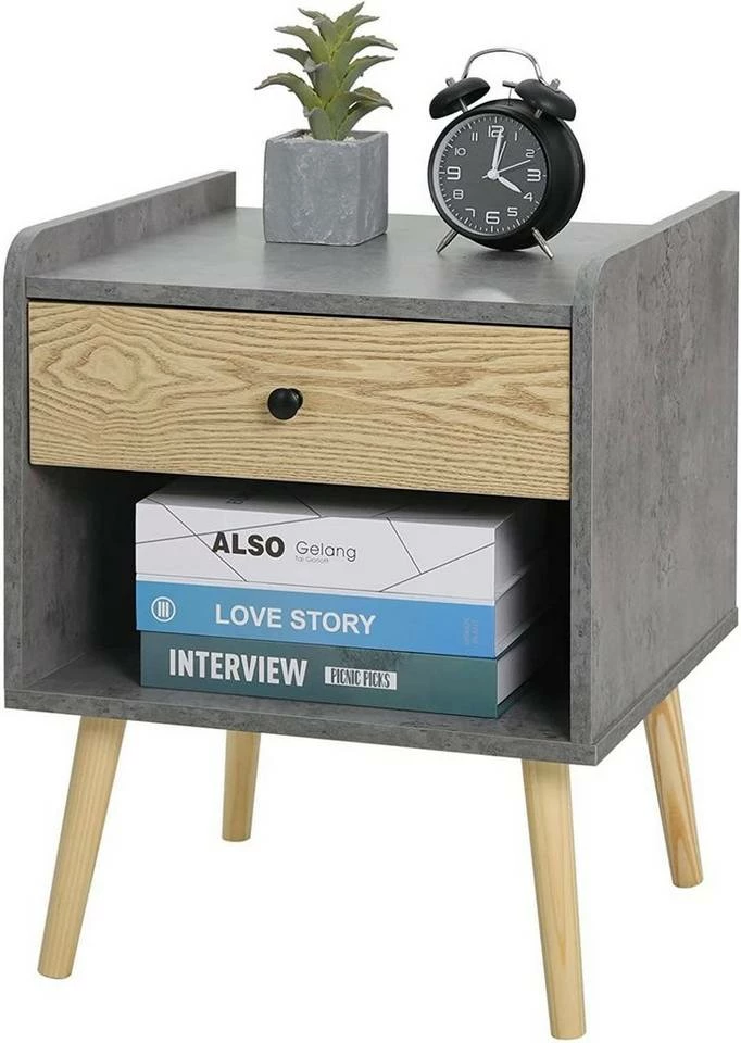 - Der 15 mm starke Holzwerkstoff mit Furnier für den Nachttisch ist dichter als die üblichen, robust, wasserabweisend und leicht zu reinigen.