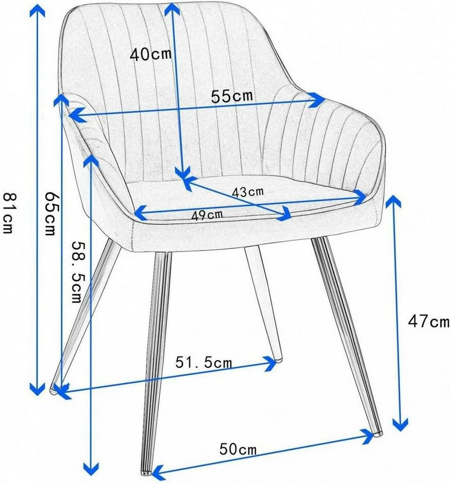 - Die Gesamthöhe beträgt ca.81 cm, dieHöhe der Sitzoberfläche ca. 47 cm, die Sitzflächeca. 49 x 43cm (B x T), die Höhe der Rücklehne: ca. 40 cm.