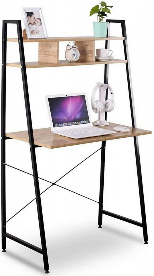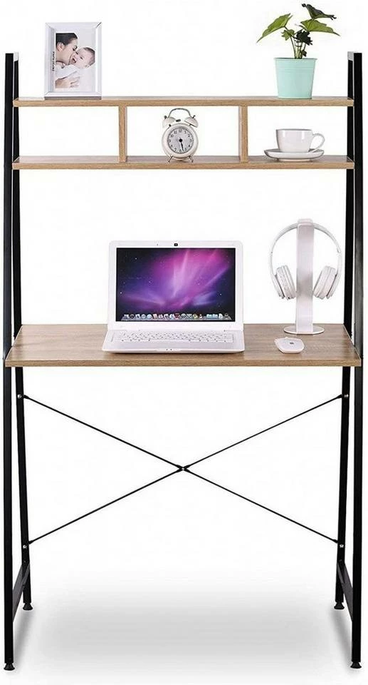 - Schreibtisch PC Tisch mit Ablage Holz Stahl