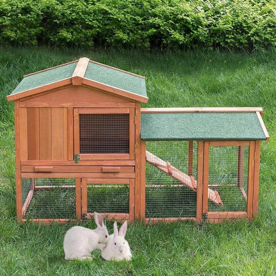 - Großzügiger Platz: Dieser Hasenstall bietet den großzügigen Platz für Freilauf auf dem Boden. Dieser Stall eignet sich gut für die Familie mit 2-3 Kaninchen oder Hasen.