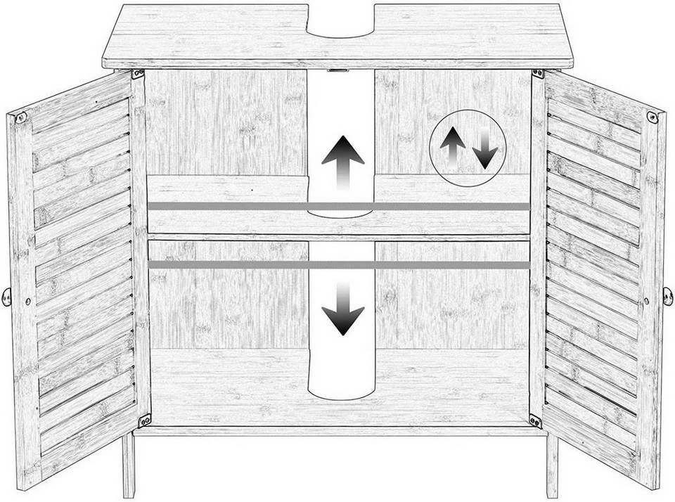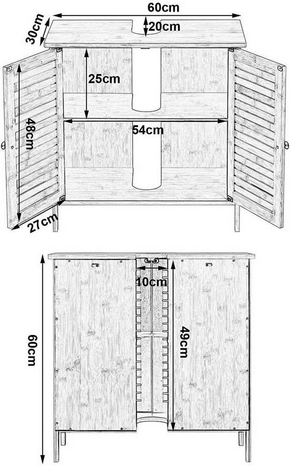 - Vor dem Kauf messen Sie die Größe Ihres Siphons und den zur Verfügung stehenden Platz unter dem Waschbecken aus, um festzustellen, ob dieser Schrank Ihre Badezimmer passt