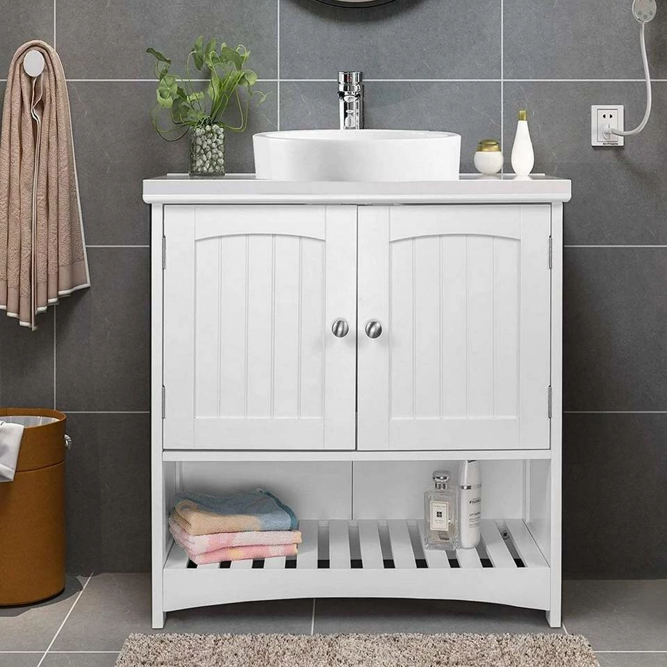 - Das offene Regal ebene sowie der Schrank bieten viel Platz für Hygieneartikel