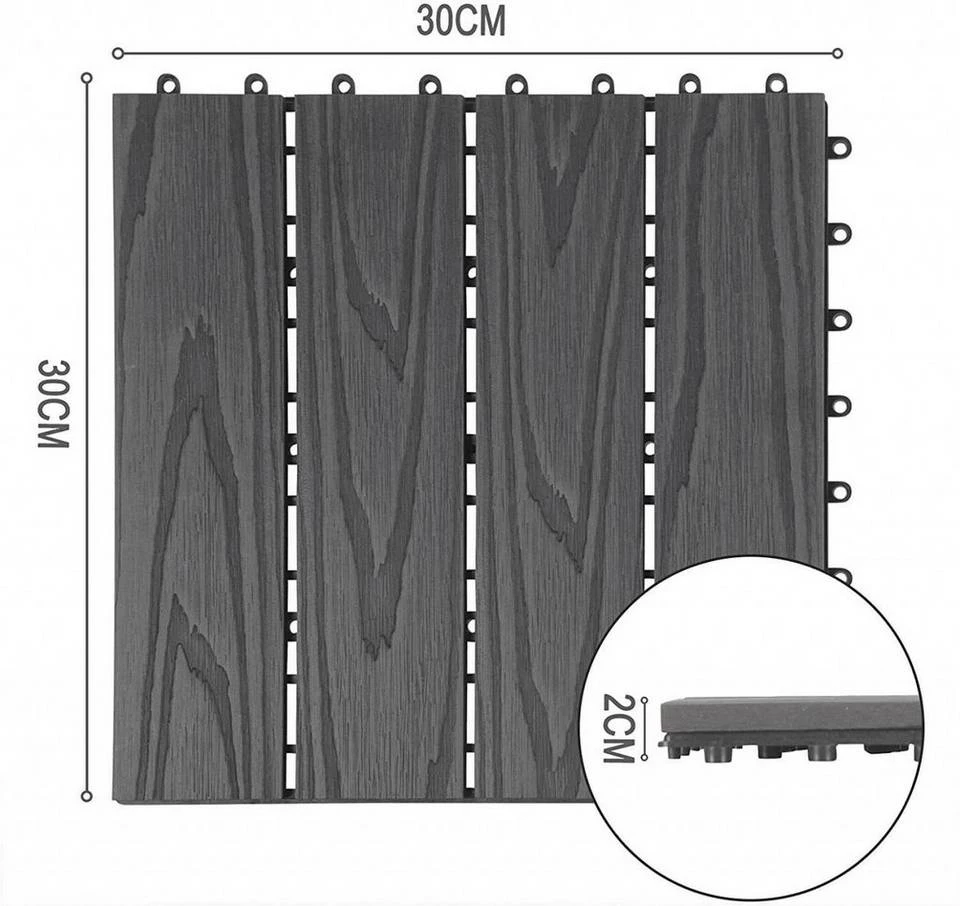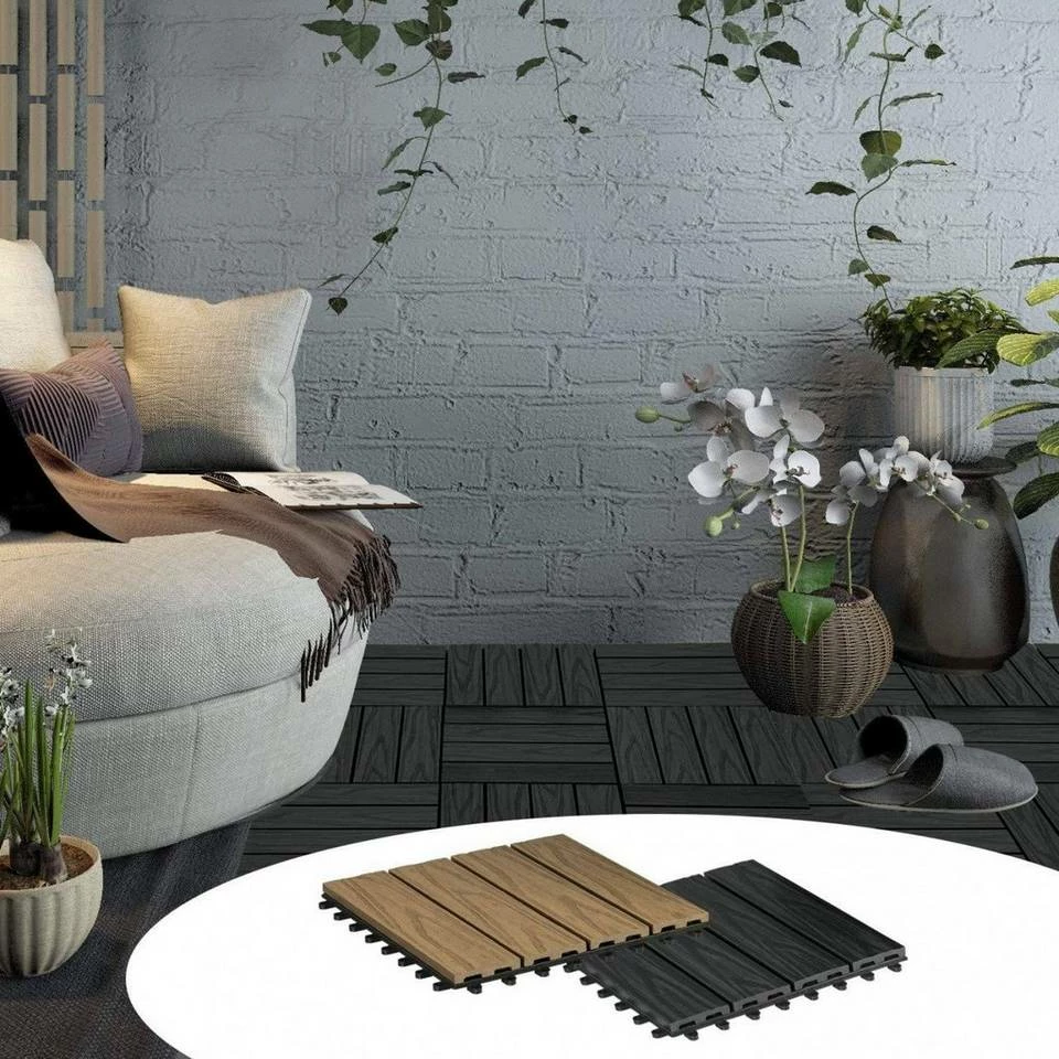 - 11 Stück WPC Terrassenfliesen 30x30cm Holzstruktur