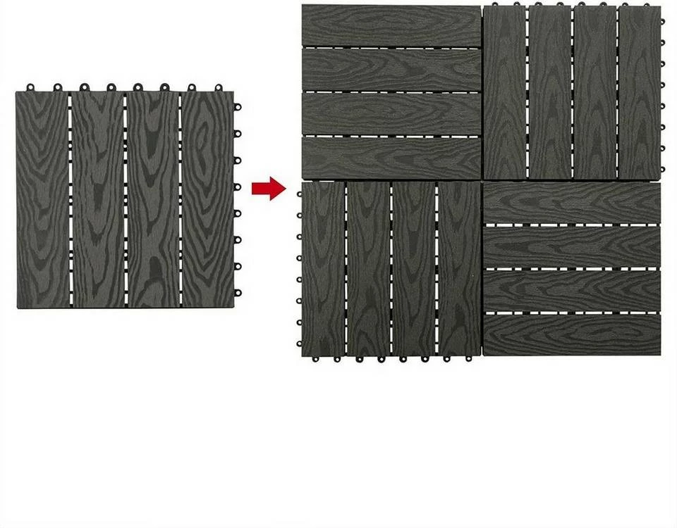- Lieferumfang: 11x WPC-Fliesen je 30 cm x 30 cm = 1m²