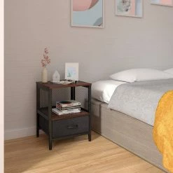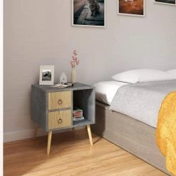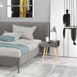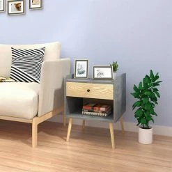 EUGAD Nachttisch, Beistelltisch mit Schublade Nachtkommode, Holzbeine MDF, Grau Weiß