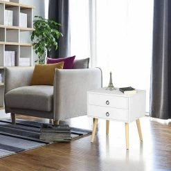 EUGAD Nachttisch, 2er-Set Beistelltisch mit Schublade Nachtkommode, Holzbeine MDF, Weiß
